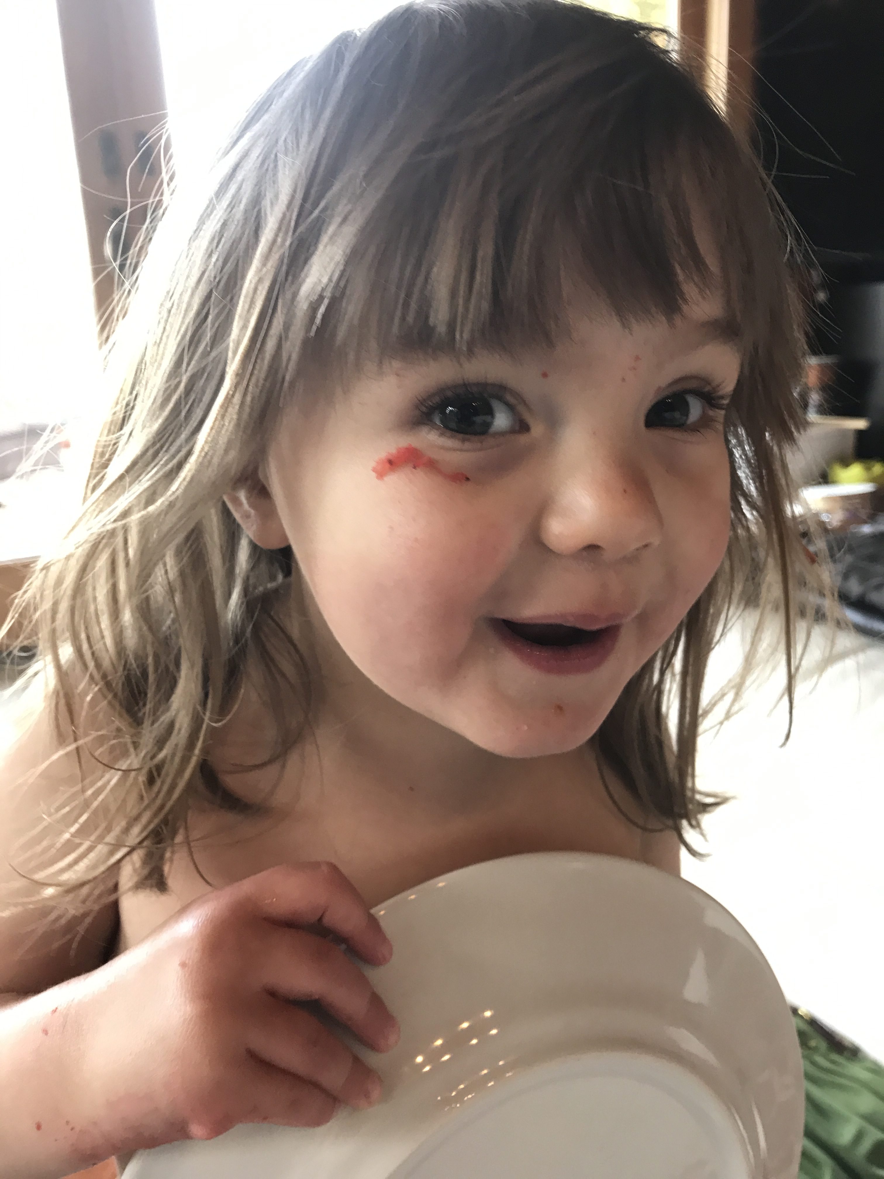 What great pictures! She is incredibly cute. The picture I like best has her with a plate in front of her face. Reply
